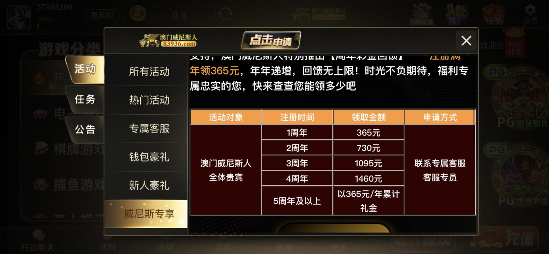 注册过的可以去查一下注册时间满年可以领彩金,然后老用户登陆也有回归红包,网址:83936.com