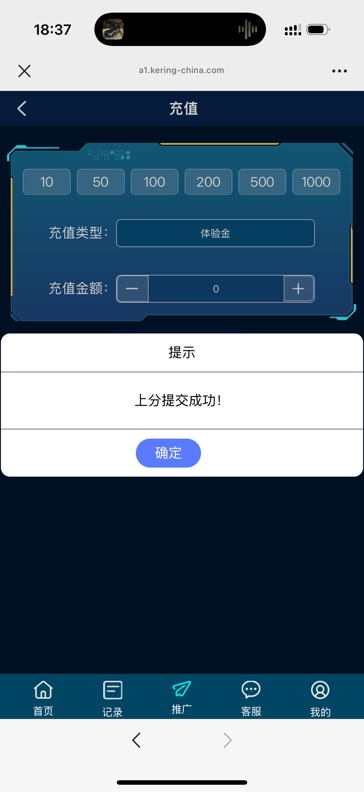 充值那里选择体验金直接秒10打上50下8.8一个组合完事