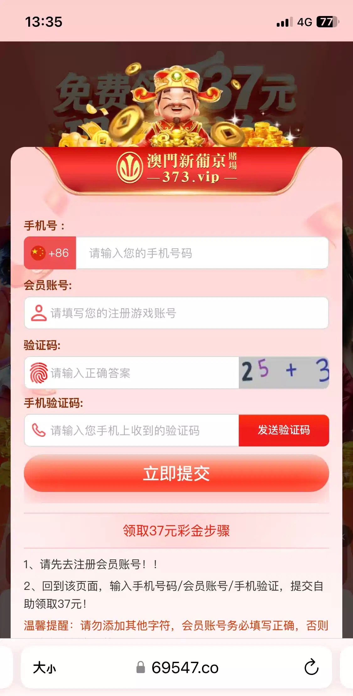短信链接网址:69547.co