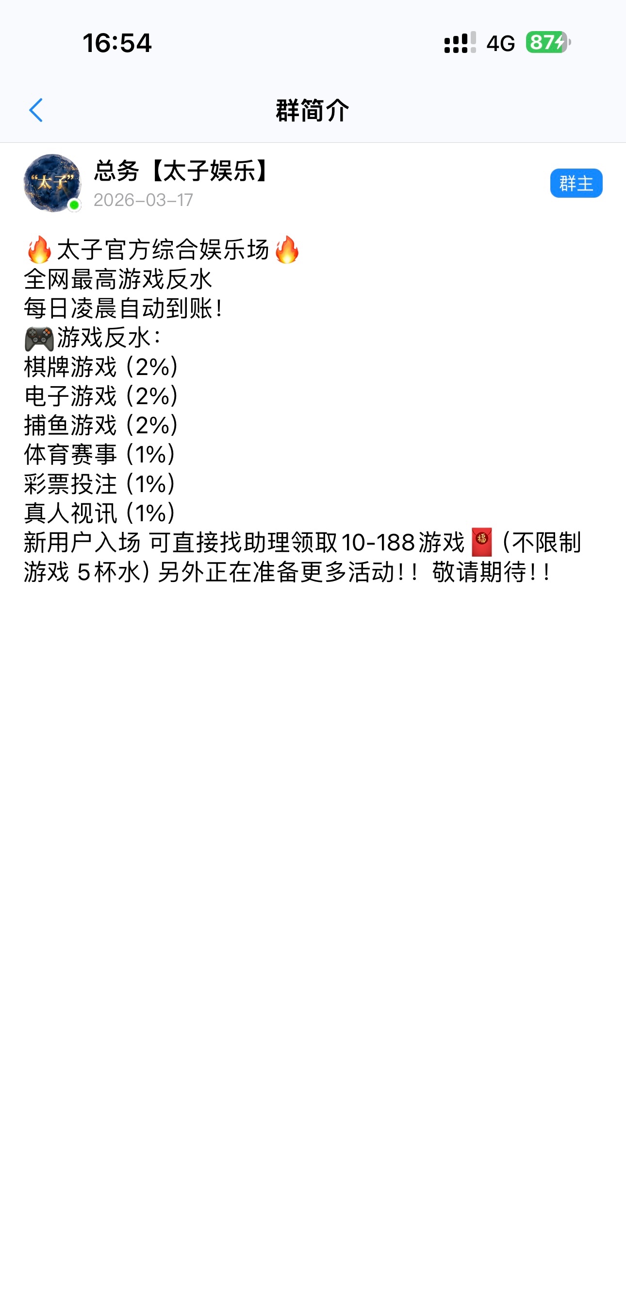 添加客服领的应该是新出的 之前没听说过 要下载55联系客服领取 我昨天领了38挂壁了 今天看活动还在 趁现在人少快冲兄弟们 55地址:55chat.com 客服:mk9jkhms9g